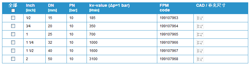 閥門個(gè)別配置(參見表格)